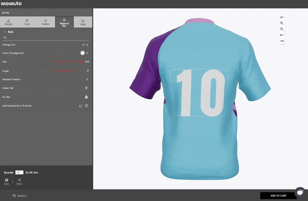 Intégrez un nom et un numéro fictifs dans le style, la taille et la couleur de votre choix. Cela vous donne un aperçu pour trouver la bonne ambiance.
